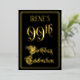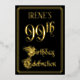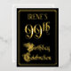 The front of this ornate and luxurious foil ninety-ninth birthday party invitation design features the message “99th Birthday Celebration” in fancy script-style text. It also has a custom name. The background of the front is coloured black by default (although it can be customised to a different colour). The back features personalised details about the event, such as the date, time, location, and any other relevant information. Elegant, opulent, customised invitations like these might be used to invite guests to a birthday celebration being held to honour somebody’s 99th birthday. [~Z0000589]