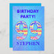 99th Birthday party invitation. Add a name and your details to make a fantastic birthday party invitation. The numbers are made from words connected with birthdays to get everyone in the mood!