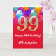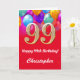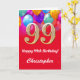 99th Birthday Red and Gold Colourful Balloons Card