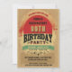Funky 99th birthday party invitations template. Mens' or womens' colourful unisex vintage retro style personalised birthday party invites. Woman's or man's affordable personalised custom 99 year old birthday party celebration invitations with a beautiful, elegant, groovy, retro themed design with a grungy star burst vector illustration in red with ornate brown calligraphic / calligraphy swirls and flourishes ornaments and trendy retro typography / text design and green banners on a tan / beige and yellow grunge background. A cool, modern, fashionable, design for men or women with a vintage style theme. These stylish, classy, pretty, grunge, shabby chic invites are printed / decorated on both sides. PLEASE NOTE:- All invitations on Zazzle have flat printed images. If you need any assistance customising your product, please contact me through my store and I will be happy to help.