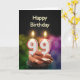 A birthday cup-cake with candles. The candles are made up of the number 99, for a 99th birthday. A birthday card suitable for everybody.