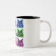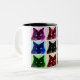 style multi-coloured cat collage on ceramic mug
