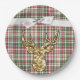 9" Round Paper Plate Gold Glitter Reindeer Plaid
