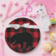9" Round Paper Plate Red Plaid Black Bear