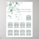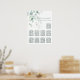 This wedding seating chart (poster) features painted watercolor eucalyptus, botanical green, and light blue leaves.