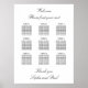 9 Table Elegant Minimalist Seating Chart, please personalise the names of the couple and the names of the guests along with any of the other text that you may wish to personalise. An elegant seating chart featuring stylish black text in a clean minimalistic layout on a white background.