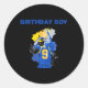 9 Years Old Birthday Boy Blue And Yellow Basketbal Classic Round Sticker