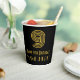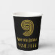 This Roaring Twenties inspired and vintage appearance birthday themed paper cup design features a large art deco inspired style number “9”, along with the birthday greeting message “Happy 9th Birthday,” and a personalised name. It also has a black-coloured background. Vintage appearance paper cups like this might be fun to use at a birthday party being held for somebody who is celebrating their 9th birthday. [~Z0000546]