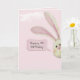 Cute bunny with pink speech bubble on a pink sky with white clouds for 9th birthday.