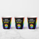 This fun and cheerful birthday themed paper cup design features a big number “9“ having a vibrant rainbow spectrum inspired gradient pattern, along with the message “HAPPY 9th BIRTHDAY,”, and a custom recipient name. Birthday themed paper cups like this might be used at a party celebrating somebody’s ninth birthday. [~Z0000639]