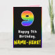 9th Birthday: Colourful Rainbow # 9, Custom Name Card