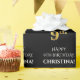 This elegant and luxurious birthday-themed wrapping paper design has the message "HAPPY 9th BIRTHDAY,", a customisable name, and the birthday number "9th" having a faux/imitation gold inspired appearance pattern. The background is coloured black. Wrapping paper like this might be used when wrapping gifts that are being given to celebrate somebody’s 9th birthday. [~Z0000454]