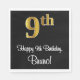 This sophisticated, elegant, and luxurious birthday paper napkin design features a large ordinal number “9th” having a faux/imitation gold-inspired appearance, plus the birthday greeting message “Happy 9th Birthday,” and a custom name in a script-style font. The background is coloured black. Sophisticated birthday themed paper napkins like this might be used at a birthday party in celebration of somebody’s ninth birthday. [~Z0000516]