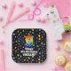 This cheerful and joyful birthday-themed paper plate design features a large number “9” having a rainbow spectrum gradient inspired pattern. It also features the message “Happy 9th Birthday,”, and an editable name. The background features an exciting and colourful pattern featuring many star shapes with different colours and sizes. Colourful paper plates like this might be fun to use at a party in honour of somebody’s 9th birthday. [~Z0000582]