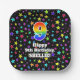 9th Birthday: Fun Stars Pattern and Rainbow “9” Paper Plate