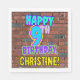 This fun birthday themed paper napkin design features the message “HAPPY 9TH BIRTHDAY,” having a vibrant, colourful, graffiti-inspired appearance, in addition to a personalised recipient name. The background features a pattern inspired by the look of a brick wall. Birthday themed paper napkins like this might be fun to use at a party being held for somebody who is celebrating their 9th birthday. [~Z0000534]