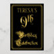The front of this elegant, fancy, foil ninth birthday celebration invitation design features the message “9th Birthday Celebration” in opulent script-style text. It also has a personalised name. The background of the front is coloured black by default (although it can be customised to a different colour). The back features personalised details about the event, such as the date, time, location, and any other relevant information. Luxurious, ornate, customised invitations like these might be used to invite guests to a birthday celebration/party being held in celebration of somebody’s ninth birthday. [~Z0000589]