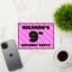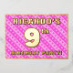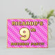 The front of this fun and joyful ninth birthday party foil invitation card design features an editable name, a large number “9th”, the message “BIRTHDAY PARTY!”, and a border. The background of the front features a loving light pink and dark pink stripes pattern, with heart shapes. The back features personalised details about the event, such as the date, time, place, and any other important information. Customised invitations like these might be a fun way to invite attendees/guests to a birthday party being held to celebrate somebody’s 9th birthday. [~Z0000603]
