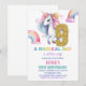 9th Rainbow Unicorn Birthday Invitations Glitter