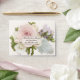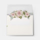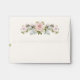 A2, for rsvp response cards, preprinted with your return address so that they match your invitation set and make a beautiful statement. They are two-sided envelopes that beautifully coordinate to the invitation set of the same name. The envelopes have a hand painted image of a blush pink english hybrid rose paired with small off white miniature roses and a lavender purple freesia blossom. They are so beautiful you can almost smell the springtime fragrance! Paired with a greyed mint green succulent leaf for a more modern take on a vintage, romantic theme. Perfect for a bridal shower tea, outdoor garden party, formal wedding or other romantic styled event. A complete suite of coordinating wedding invitation collection items are available to match.
