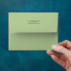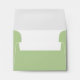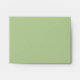 Sage green envelope (577 - C24 M0 Y46 K10) and Add your return address on the back flap. Small invitation and note card envelope. 5 ¾” W x 4 3/8” H. Elegant square flap and secure gum seal. Laser and inkjet compatible. Fits 5 3/5” x 4 1/4” and smaller invitations and cards. If you have a certain colour you need please email me at paula@labellarue.com