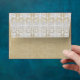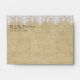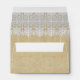 A6 Size Envelope. NOTE: this is a flat printed design, there are no raised lace, fabric or layered elements on this product. COLOR PALETTE: white, tan, burlap DESIGN COLLECTION: Matching two sided, printed, return address square wedding invitation envelope. This is a modern BOHO or Bohemian Style, gypsy inspired, trendy chic stylish look. It has a simple, clean yet lovely beauty. Created from vintage Victorian or Edwardian era swirl baroque deep drop leaf lace pattern and tear drop design ornaments that have been graphically hand transformed into an elegant beautiful, sophisticated lace trim border. The laces are laid on top of a tea stained burlap textured background pattern. A complete wedding invitation set is available to match. The reverse side has the tear drop, diamond swirl point lace pattern in a full repeat pattern.