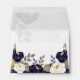 Rich navy blue hues pair with white and are accented in faux gold leaf on this Save the Date Spanish Quinceanera envelope to coordinate with our 4x6 Save the Date flex magnets.