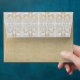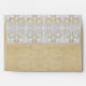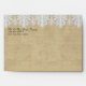 A7 Size Envelope, for 5" x 7" invite. NOTE: this is a flat printed design, there are no raised lace, fabric or layered elements on this product. COLOR PALETTE: white, tan, burlap DESIGN COLLECTION: Matching two sided, printed, return address square wedding invitation envelope. This is a modern BOHO or Bohemian Style, gypsy inspired, trendy chic stylish look. It has a simple, clean yet lovely beauty. Created from vintage Victorian or Edwardian era swirl baroque deep drop leaf lace pattern and tear drop design ornaments that have been graphically hand transformed into an elegant beautiful, sophisticated lace trim border. The laces are laid on top of a tea stained burlap textured background pattern. A complete wedding invitation set is available to match. The reverse side has the tear drop, diamond swirl point lace pattern in a full repeat pattern.