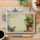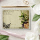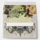 A7 Matching two sided envelopes for invites and cards. COLOR PALETTE: yellow, tan, cream, orange, green, and black. DESIGN: This antique vintage typography inspired wedding invitation set or collection has a complete ensemble of products and has been created in several colorways. Using vintage printer's ornament decorative swirls from the baroque Victorian era, mixed with postcard flower art including lily of the valley, english violets, roses and snap dragon blossoms. A pair of yellow song birds with an open bird cage completes the front of the invite. The reverse side includes your text, which is easily customised using the template fields for personalising. There are more swirled flourish designs, swirled line work, aged, grunged border edges and the birdcage and roses. This is a mix of vintage design elements and original watercolor backgrounds graphically designed into new art work by Audrey Jeanne Roberts.