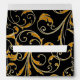 NOTE: This is a flat printed image, there are no jewels, raised layers or gold metallic elements. COLOR PALETTE: black, soft creamy white with faux gold metallic glitter look DESIGN COLLECTION: A7, Wedding Invitation size envelop, envelope. Matching two sided printed envelopes to match the wedding invitation set of the same name. Inspired by Old Hollywood and her heyday glam era, this wedding invitation set is perfect for elegant, sophisticated, modern wedding celebrations. A classic, beautiful swirling leaf damask style pattern has been graphically designed to look like a silver edged gold glittery embroidered lace design with a golden buckle that has a diamond border over faux glitter. A contemporary typography layout for your invite wording and information updates this vintage retro design. A gorgeous, unique and pretty design for the most discriminating bride.