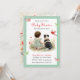 Girl's baby shower invitations. Sweet baby girl sitting next to her little black puppy dog in a patch of pretty watercolor flowers. Sage green and red wildflowers and butterflies background.