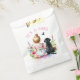 Girl's baby shower It's a Girl favour bags. Sweet baby girl sitting next to her little black puppy dog in a patch of pretty watercolor flowers. Pink and blue butterflies and pretty wildflowers.