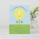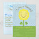 Adorable smiling sunflower with cute saying 'a baby is blooming' at the top on the front. The back is a light blue gingham, put directions, registry or other information about your baby shower.