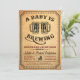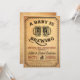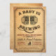 "A Baby is Brewing" Baby Shower BBQ Invitations. Gender nuetral. Vintage BBQ Baby Shower Invitations with two frothy beer mugs, decorative text, retro baby carraige and a rustic weathered background. Easy to customise!