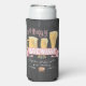 A baby is brewing can coolers! Celebrate your baby on the way with your favourite beverages in these can cooler keepsakes. This design features a black chalkboard background with beer steins and glasses illustration.