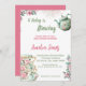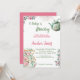 Elegant mint green and pink baby shower tea party invitation template. Cute tea pot and tea pot baby shower invitation.