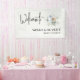 Welcome your guests in style with this charming "A Baby is Brewing" baby shower banner. Featuring a beautiful watercolor illustration of a baby bottle and a coffee cup surrounded by soft greenery, this banner perfectly sets the tone for a cosy and elegant baby shower. Customisable with the parents-to-be's names, this banner is a wonderful way to add a personal touch to your celebration. Ideal for indoor or outdoor use, this durable banner makes a lovely focal point for your baby shower decorations, creating a warm and inviting atmosphere as guests arrive.