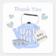Super cute baby shower thank you stickers with a cute modern mid century style kitchen kettle and tea cup surrounded by pretty blue love hearts. Such a fun design a favourite with ladies holding baby shower kitchen tea parties.