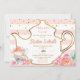 The invitation features tea pot outline with teacups and blush flowers. It's perfect for a girl baby shower tea party,