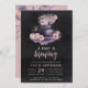 These spooky chic Halloween themed baby shower invitations feature a smoky cauldron adorned with a pumpkin and flowers in a colour palette of charcoal, pink, and purple, with "a baby is brewing" beneath. Personalise with your baby shower details.