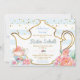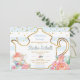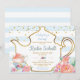 The invitation features tea pot outline with teacups and blush flowers. It's perfect for a boy baby shower tea party,