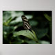A photograph of a Zebra Longwing butterfly balanced on a plants' leaf while enjoying the sweet nectar it had collected from a nearby flower.