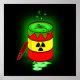Beware! Biohazard! A green glowing barrel of toxic hazardous waste with the lid carelessly left on the ground and its nasty noxious contents oozing out.