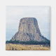 A photograph of a laccolithic butte known as, Devils Tower National Monument, towering over the landscape of rural Wyoming, one Summer day.