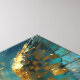 A beautiful angelic canvas wall art with a beautiful angel with a turquoise marble background and a gold halo in an impasto style.