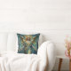 A beautiful angelic throw pillow with a beautiful angel with a turquoise marble background and a gold halo in an impasto style.