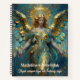 A beautiful angelic personalized notebook with a beautiful angel with a turquoise marble background and a gold halo in an impasto style. Each side has an angelic quote.