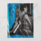 A Beautiful Woman in 1930 Black and White On Blue Postcard