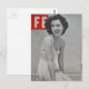 A beautiful woman from a magazine cover photo from 1939 poses in her swimsuit on the beach.