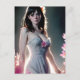 AI generated adorable woman with long black hair in a sleeveless dress with pink flowers